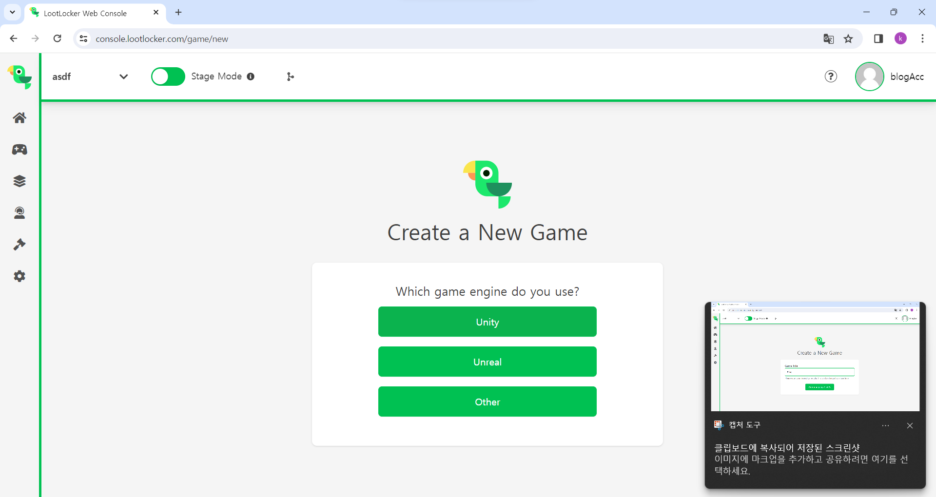 여기에 접속하여 LootLocker에서 재공 하는 SDK를 받아주세요